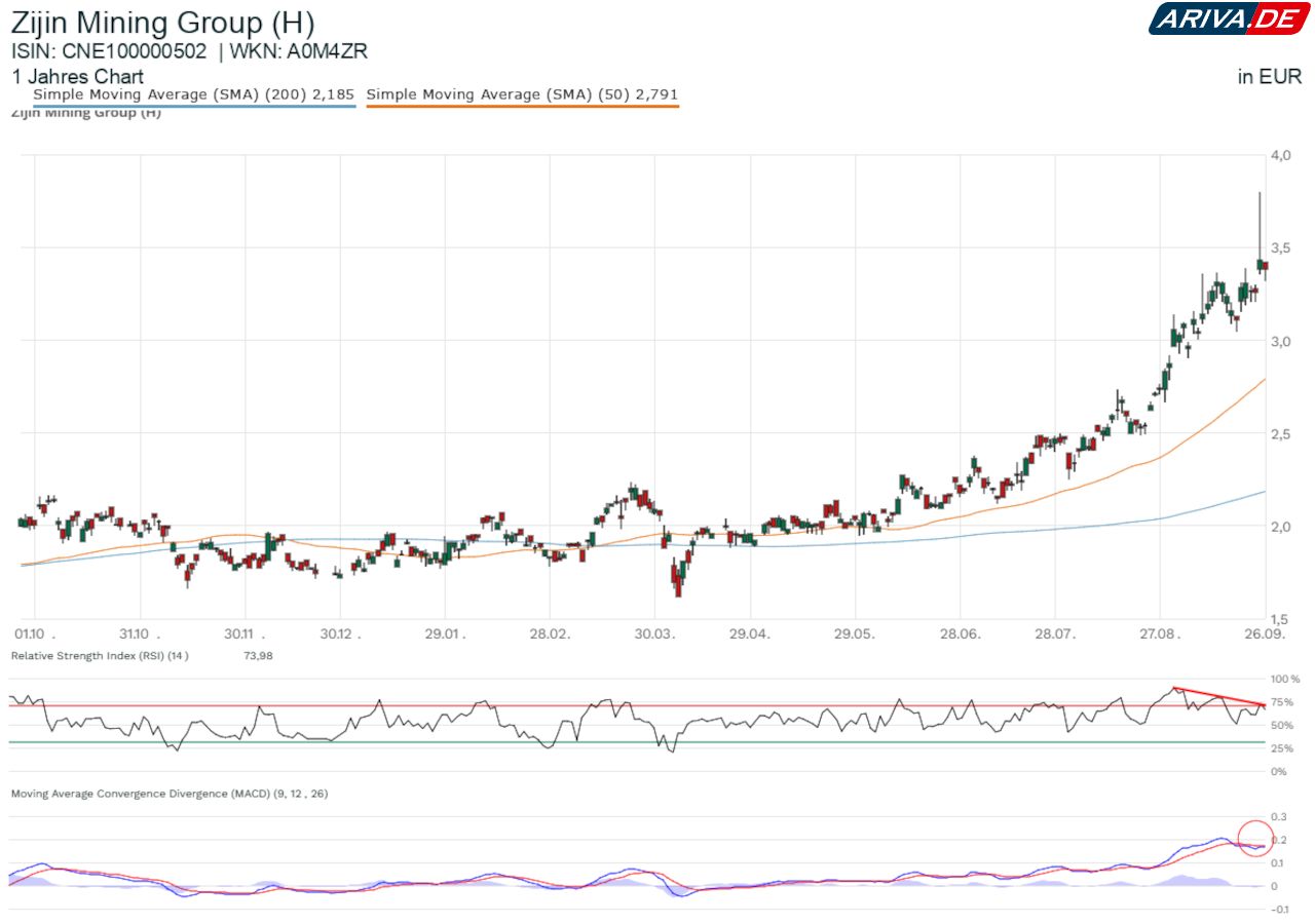 Mit einem Kursgewinn von 118 Prozent braucht sich Zijin Mining nicht zu verstecken. Der chinesische Gold- und Kupferproduzent kletterte am Freitagmorgen am Handelsplatz in Hongkong auf ein neues Allzeithoch und erreichte das erste Mal in seiner Geschichte eine Marktkapitalisierung von 100 Milliarden US-Dollar.