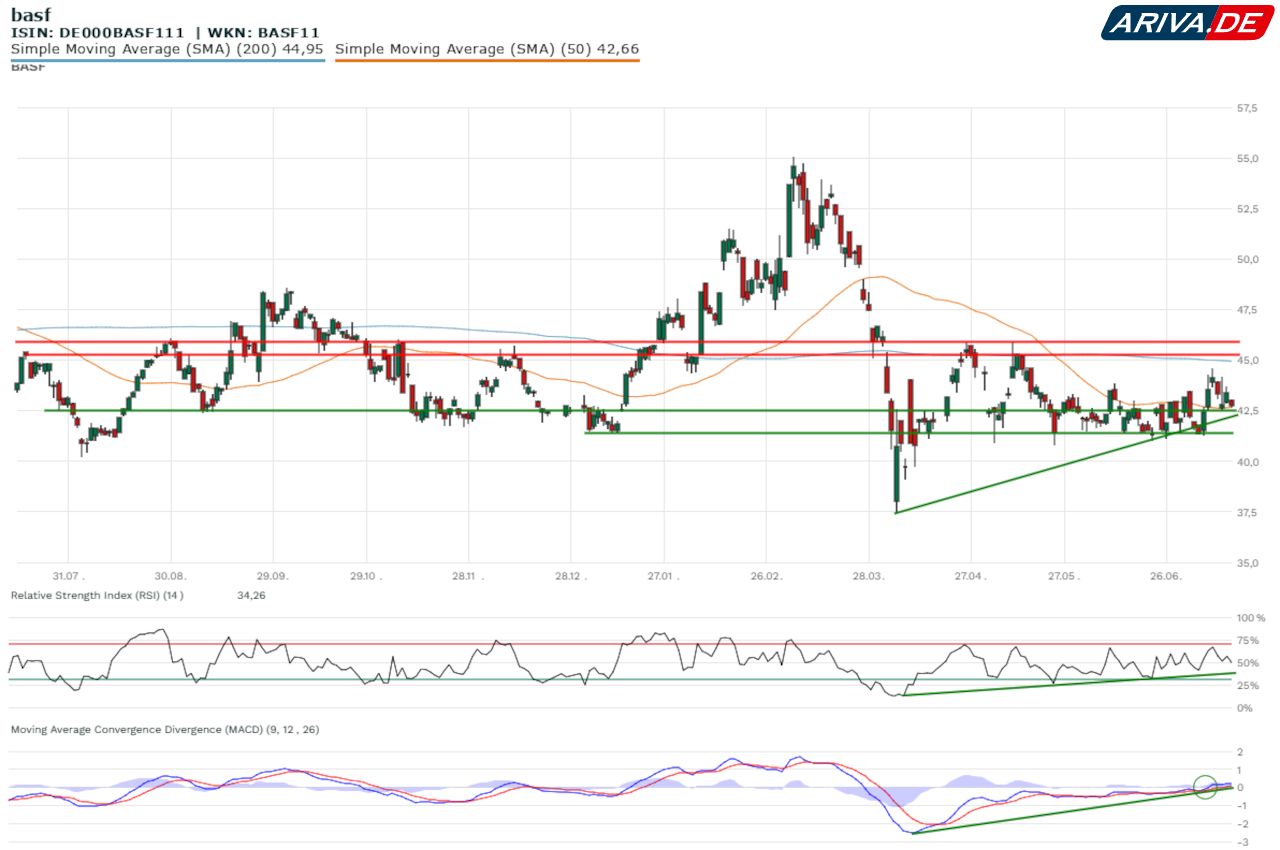 Das hat zu einer in diesem Jahr bislang schwachen Aktienkursentwicklung des Branchengröße BASF geführt. Die Aktie notiert gegenüber dem Jahreswechsel kaum verändert und trat vor allem in den vergangenen Wochen auf der Stelle.