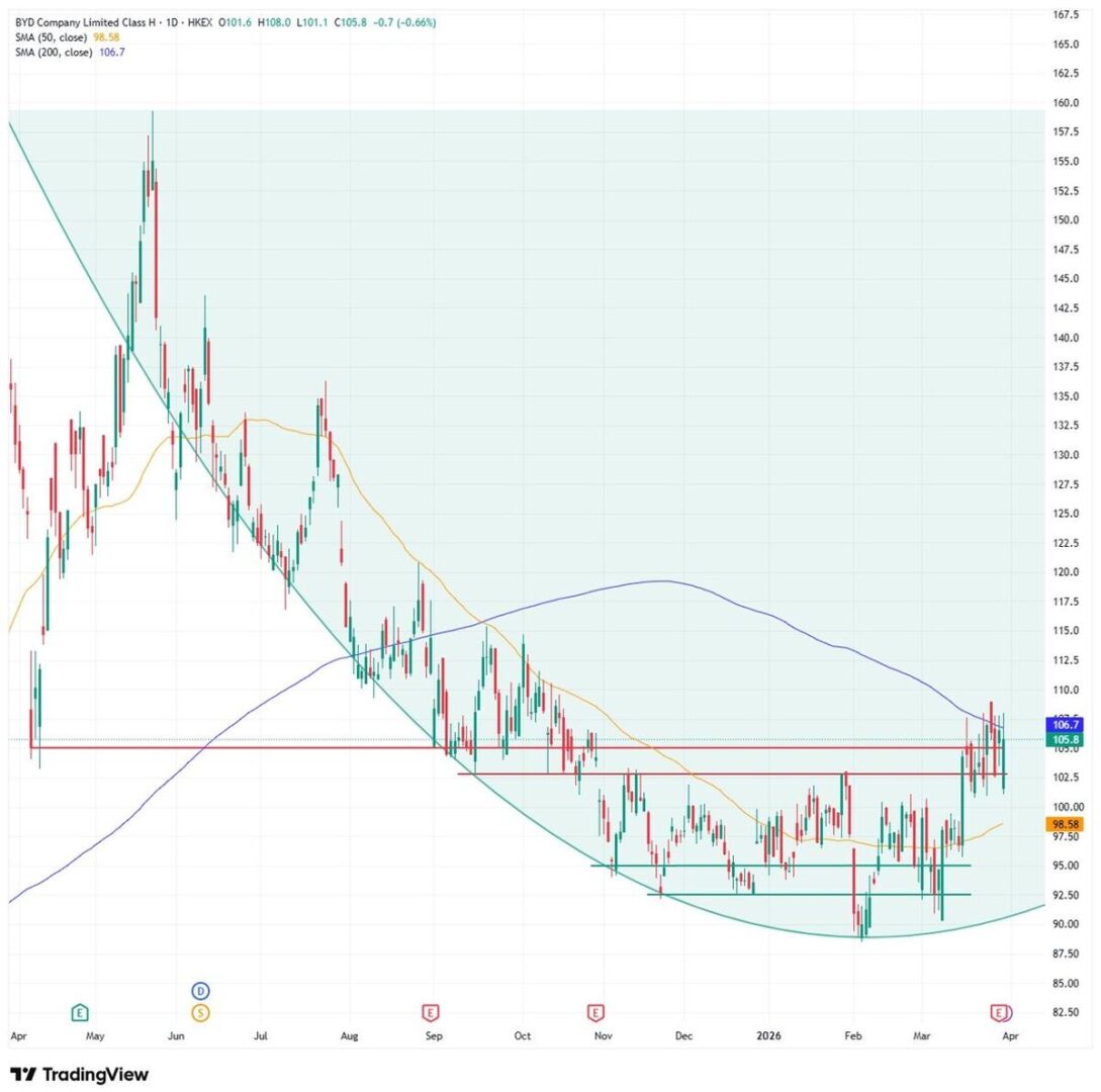 Während europäische und amerikanische Anlegerinnen und Anleger BYD für seine am Freitagnachmittag veröffentlichten Quartalszahlen durchfallen ließen, nutzen Investoren am Handelsplatz in Hongkong die schwache Eröffnung für den Einstieg und grenzten die Verluste deutlich ein, wodurch der Chart weiterhin die Chance auf ein Kaufsignal bietet.