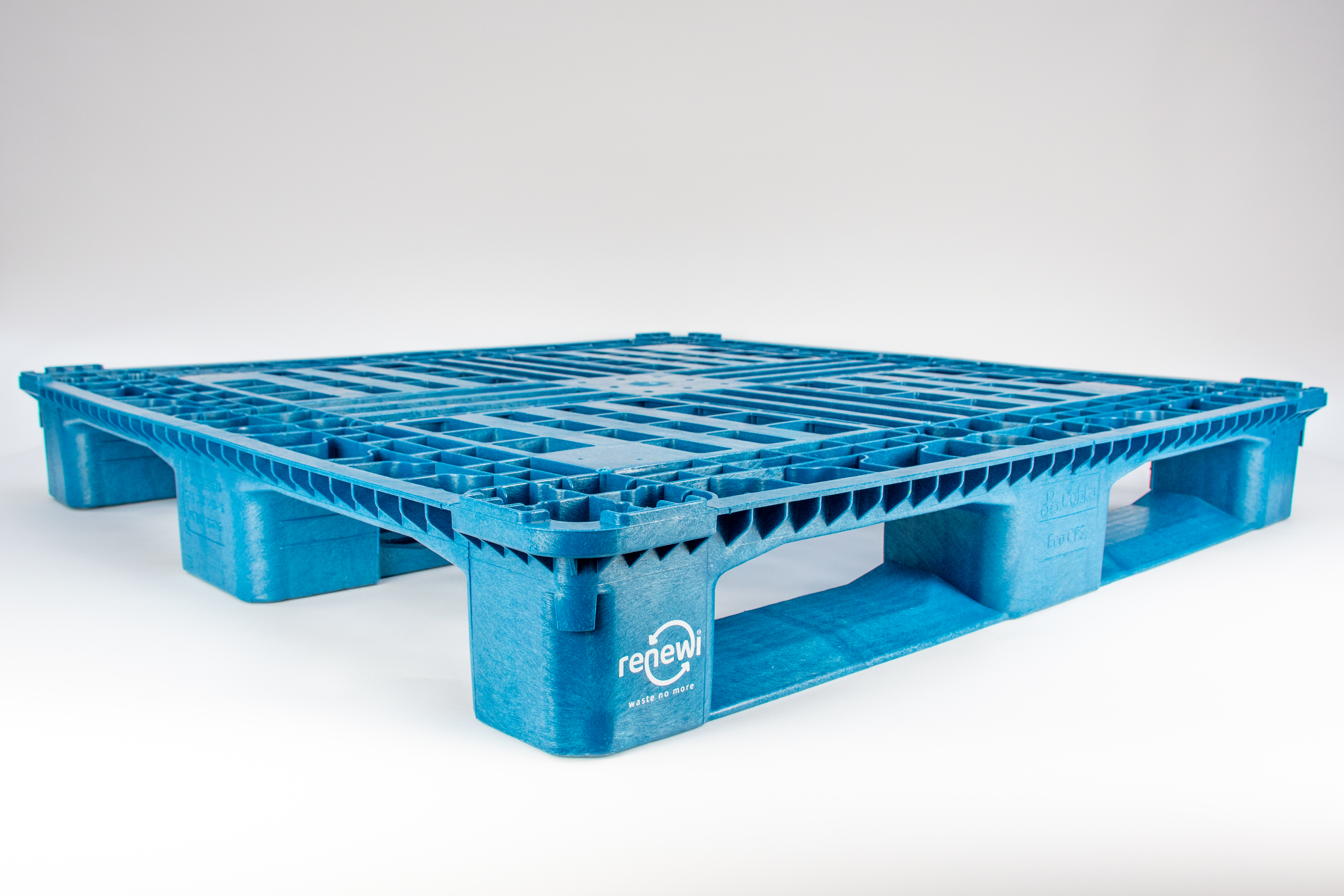 The Eco CP3 pallet is produced in the “Renewi blue” livery, making it easily recognizable as a high-quality recycled product. It is used by Renewi to transport its recycled regrind to Cabka for pallet production. Worn-out pallets are fully recycled into new ones or repurposed for other high-quality products as they are not black and thus infrared detectable. Thanks to this closed-loop system, the investment pays off after only four uses.
