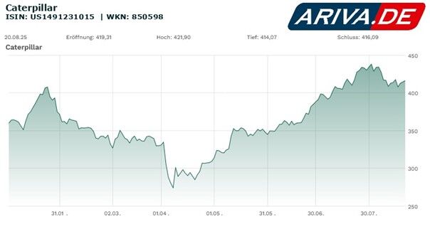 • Evercore ISI hat die Caterpillar-Aktie von "In Line" auf "Outperform" hochgestuft und das Kursziel auf 476 US-Dollar angehoben.