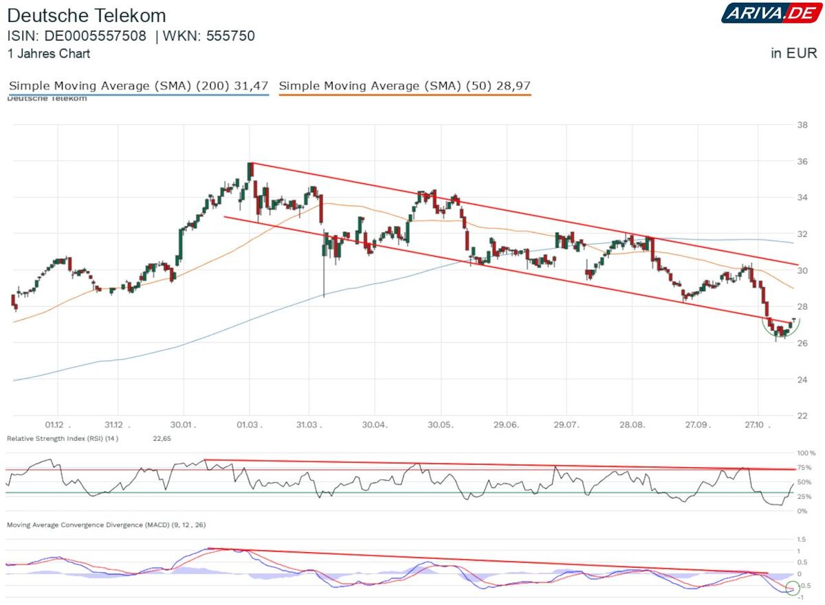Mit seinen Zahlen über den Schätzungen der Expertinnen und Experten hat die Deutsche Telekom am Donnerstag den Geschmack des Marktes getroffen. Schon in der Vorbörse legten die Anteile um knapp 2 Prozent in Richtung der Marke von 28 Euro zu. Damit nimmt die Erholung nach dem zwischenzeitlichen Verlassen des Abwärtstrendkanals an Fahrt auf.