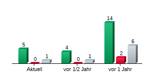 | Dürr AG | 5 | 1 | 0 | 31,67 € | 20,25 € | 11,42 € |