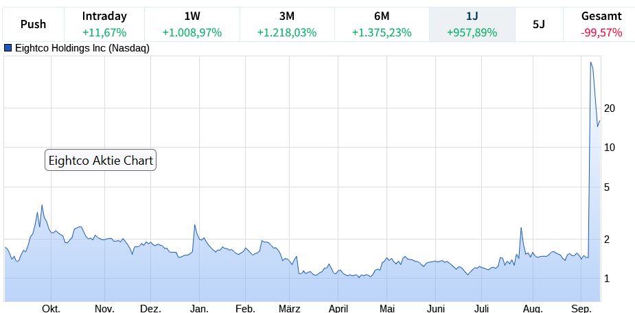 - Die Aktie von Eightco stieg um fast 3.000 Prozent.
