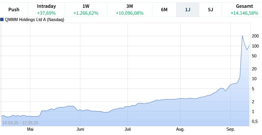 Die Aktie von QMMM Holdings ist innerhalb weniger Tage um atemberaubende 3.816 Prozent gestiegen. Ausgerechnet ein Konzern, der noch vor wenigen Monaten vor dem Delisting stand, avanciert nun zum nächsten Hype-Titel. Doch hinter der Rally stehen mehr Fragezeichen als Substanz.