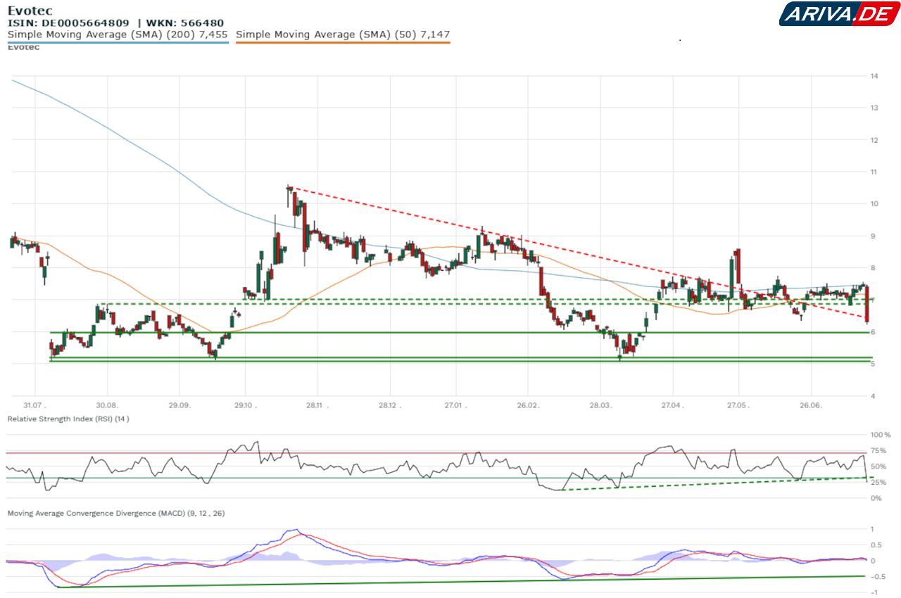 In den Vorwochen zeigte Evotec durchaus konstruktive Tendenzen. Zwar trat die Aktie vorwiegend auf der Stelle, verlor dabei aber die für Trendwendebewegungen so wichtige 200-Tage-Linie nie aus den Augen, während die Verkäuferinnen und Verkäufer die 50-Tage-Linie als Unterstützung respektierten.