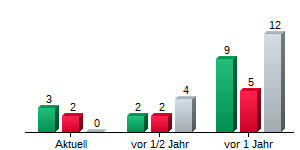 | Generali SpA | 3 | 0 | 2 | 32,60 € | 33,80 € | -1,20 € |