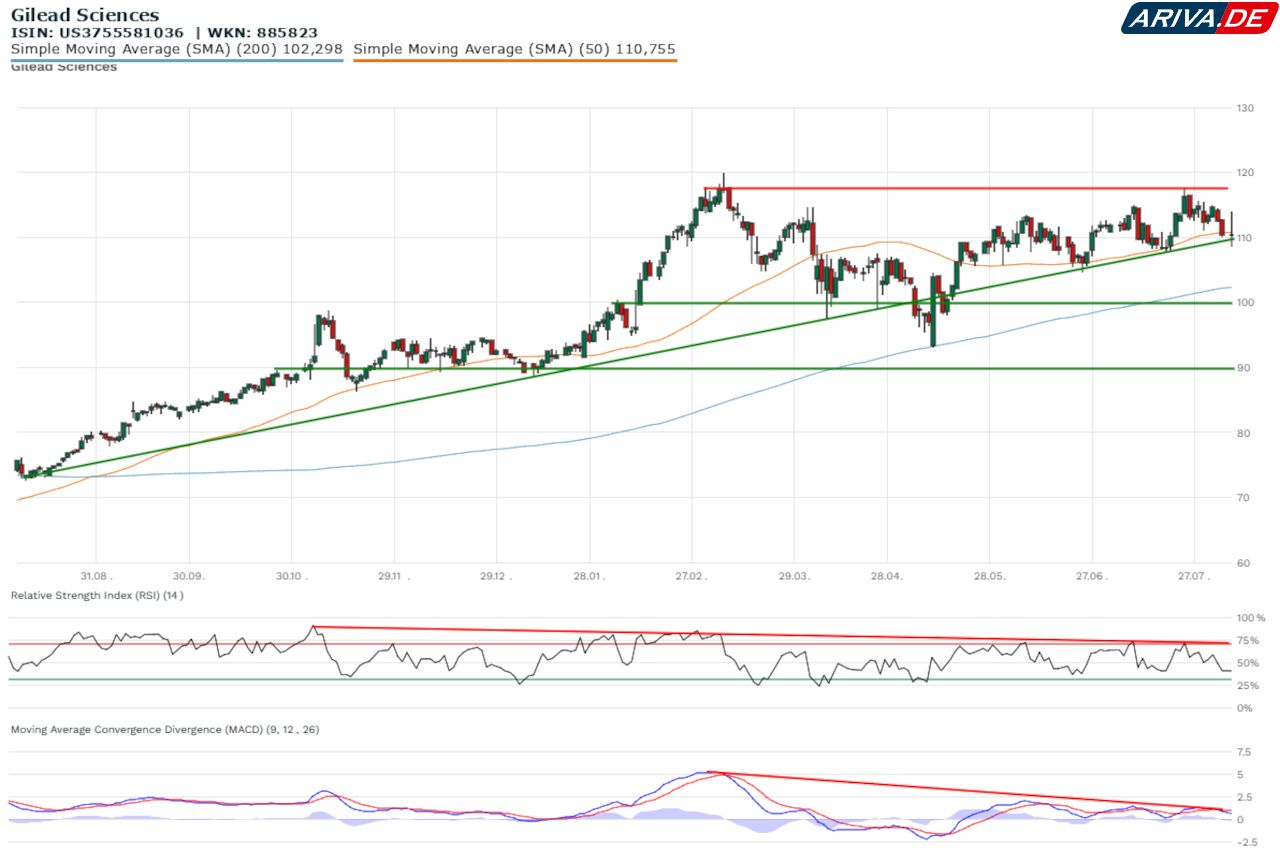 Behalten diese Gewinne vor dem Wochenende ihre Gültigkeit, hat Gilead Sciences die Möglichkeit, die Hängepartie der vergangenen Wochen und Monate hinter sich zu lassen und einen Ausbruch über den bei 117,60 US-Dollar verlaufenden Widerstand zu wagen.