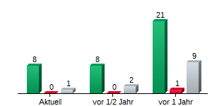 | Infineon AG | 8 | 1 | 0 | 43,30 € | 36,51 € | 6,79 € |