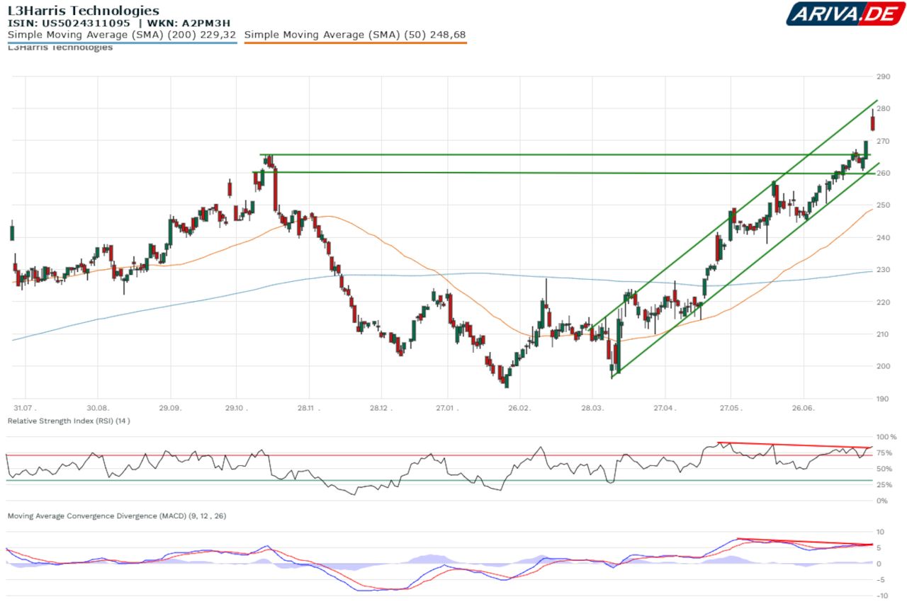 So hat sich zum Beispiel die Aktie von L3Harris, einem Spezialisten für Verteidigungsgüter wie Drohnen, elektronische Kampfführung und einem wichtigen Zulieferer der Luft- und Raumfahrtindustrie, am Donnerstag auf ein neues Allzeithoch verteuert.