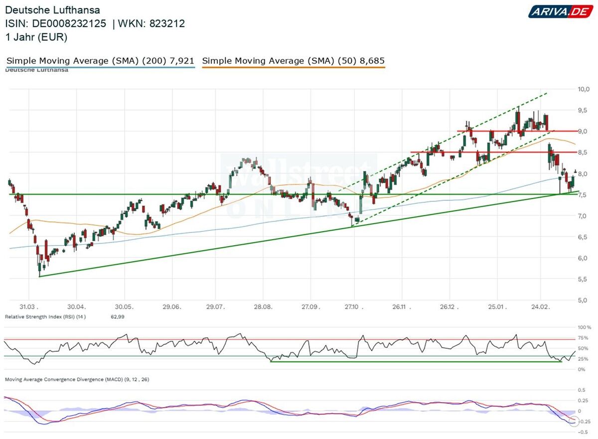 Nach einer starken Rallye im November und Dezember war die Aktie der Lufthansa mit viel Schwung in 2026 gestartet. So gelang bereits im Februar mit 9,59 Euro der höchste Stand seit Juni 2023. Solche Mehrjahreshochs gelten in der technischen Analyse üblicherweise als starke Kaufsignale.