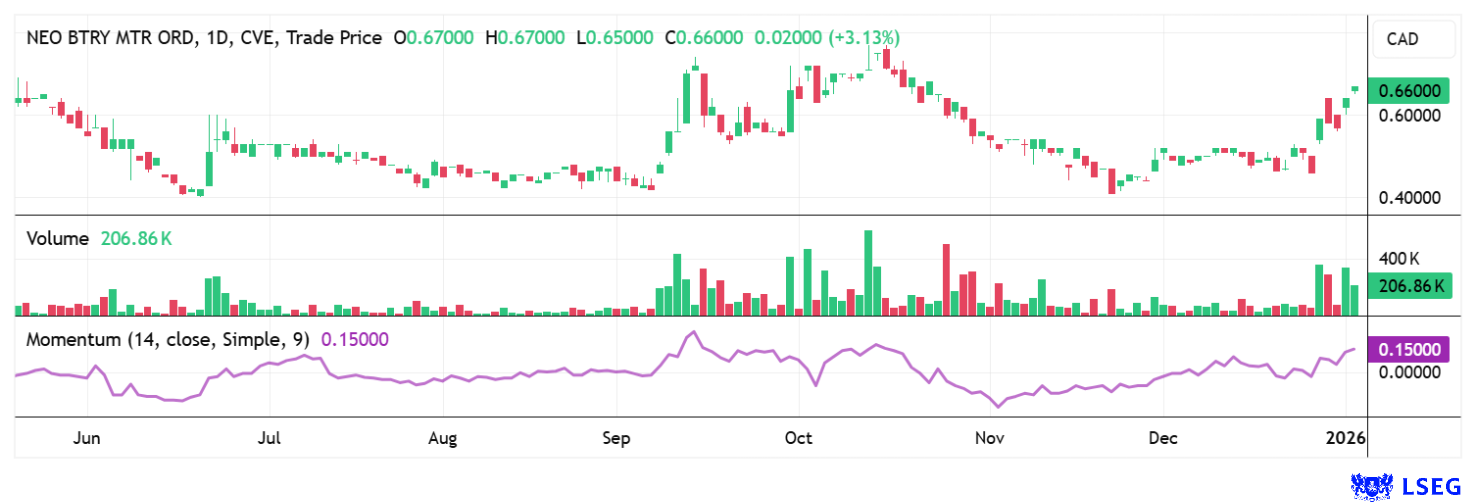 Mit technologischer Differenzierung, industrieller Produktionsreife und institutioneller Validierung verschiebt sich das Profil von NEO Battery Materials deutlich. In Verbindung mit einer noch moderaten Bewertung entsteht ein Investment Case, der 2026 sehr genau beobachtet werden sollte: Denn Batterien werden zur strategischen Infrastruktur und NEO wird mit einer zweistelligen Marktkapitalisierung Teil eines Multi-Milliarden-Markets. NEO Battery Materials ist somit keine banale Technologie-Spekulation, sondern ein industriell fundiertes Wachstumsinvestment.