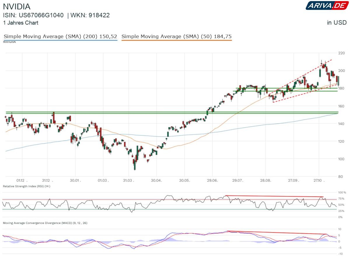 Tatsächlich hatte die Nvidia-Aktie in den vergangenen 3 Wochen mit Verlusten und einem kurzfristigen Abwärtstrend zu kämpfen, der die Anteile am Donnerstag und Freitag auf der 50-Tage-Linie hat aufsetzen lassen. Diese hat dem Verkaufsdruck bislang standgehalten.
