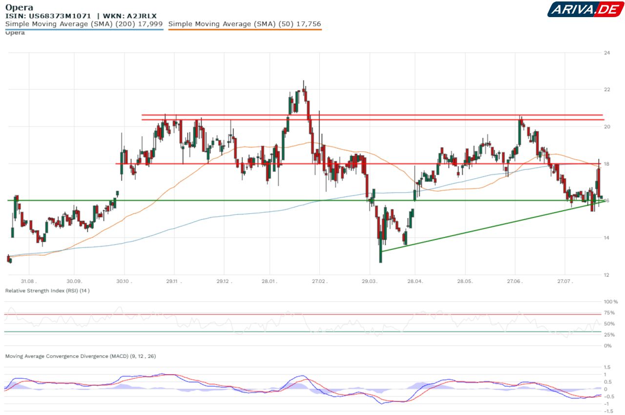 Nach Verlusten von 4,9 Prozent im regulären Handel, auch Opera wurde vom Ausverkauf bei US-Technologiewerten erfasst, verzeichnete die Aktie in der Nachbörse Verluste von weiteren 0,5 Prozent.