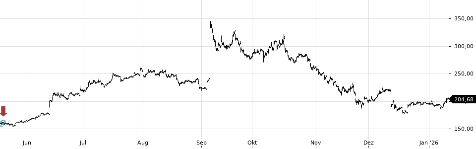 | Kurs | 165,75 € | 160,18 € | 266,175 € | 166,19 € | 150,31 € | 82,39 € |