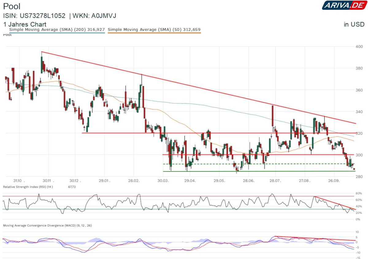 Mit seiner Beteiligung bei Pool Corp dürfte Warren Buffett bislang wenig Freude gehabt haben. Die schwache Geschäftsentwicklung, die hohe Bewertung und der absturzgefährdete Chart dürften außerdem dafür sorgen, dass die Position eine schwache bleibt. Anlegerinnen und Anleger tun daher gut daran, die Aktie von Pool Corp zu meiden.