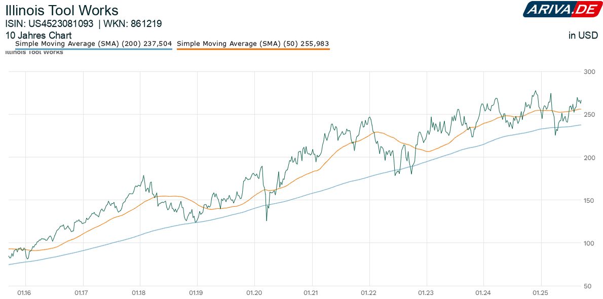 Mit Dividendenerhöhungen 61 Jahre in Folge gehört Illinois Tool Works (ITW) zu den sogenannten Dividendenkönigen. Als solche gelten Unternehmen, wenn sie ihre Ausschüttungen mindestens 50 Jahre hintereinander ununterbrochen erhöht haben. Nur 13 US-Konzerne haben aktuell eine noch kontinuierlichere Entwicklung vorzuweisen als der Werkzeughersteller aus dem gleichnamigen Bundesstaat.