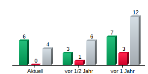| Sartorius AG Vz | 6 | 4 | 0 | 255,80 € | 257,30 € | -1,50 € |
