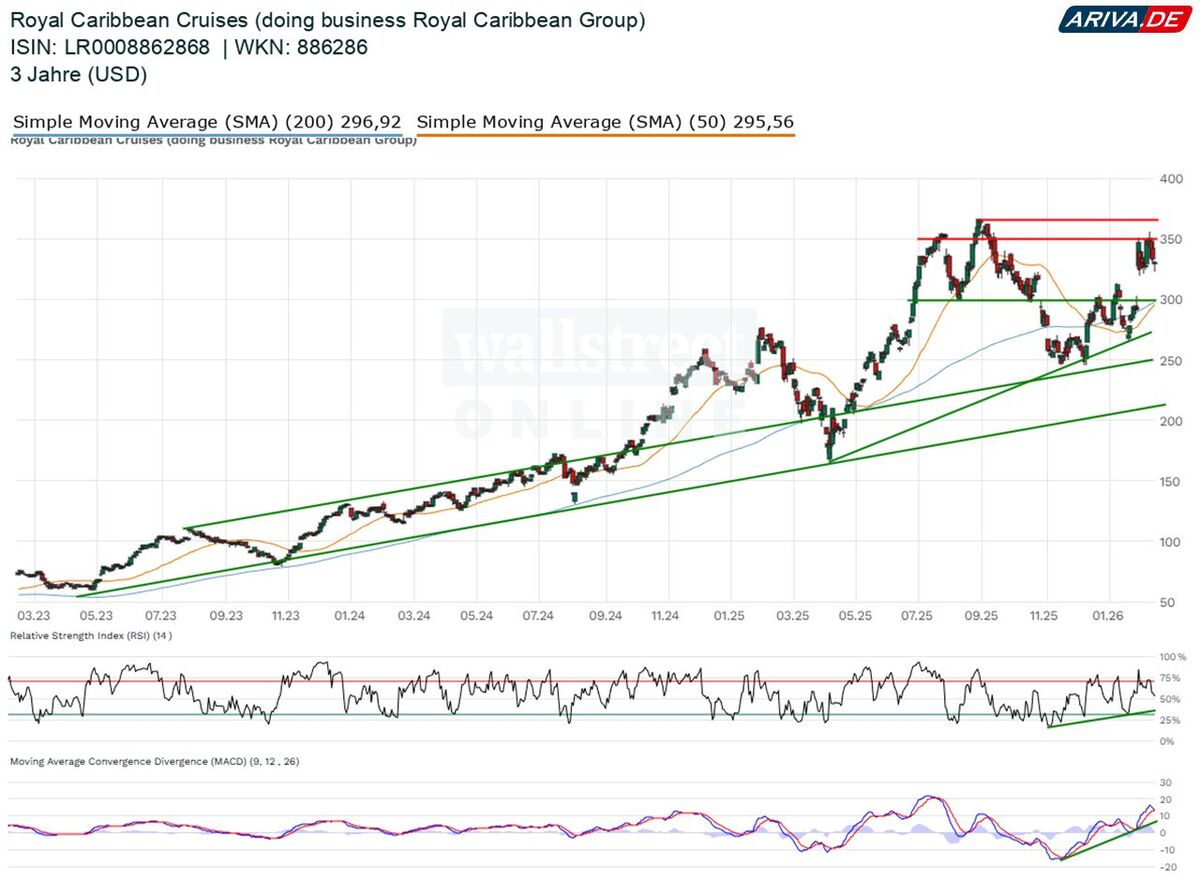 Zuletzt besonders hervorgetan hat sich Royal Caribbean, dessen Aktie das Corona-Tief längst hinter sich gelassen hat. Zwar stockte der Kursmotor im letzten Quartal des vergangenen Jahres, doch von einem neuen Allzeithoch trennt das Papier nur wenige Prozent.