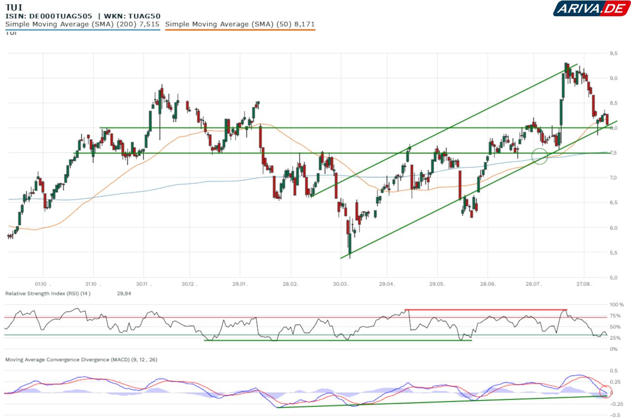 - Der zentrale Unterstützungsbereich liegt bei 8,00 bis 8,20 Euro.