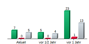 | Volkswagen AG Vz | 7 | 5 | 0 | 115,67 € | 92,70 € | 22,97 € |