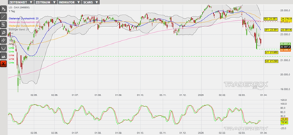 Entsprechend dürfte sich die übergeordnete Abwärtsbewegung beim DAX auch am Montag weiter fortsetzen. Dabei dürfte der Deutsche Leitindex zunächst den Support bei 21.860 Punkten (Unterstützung 1) ansteuern, der sich außerhalb des unteren Bolinger-Bands befindet. Gelingt es den Bullen im Bereich dieser Marke Kaufdruck zu entfalten, könnte der DAX ausgehend von diesem Support in Verbindung mit einem neuen Long-Signal in der Slow-Stochastik eine Gegenbewegung starten, die den Leitindex bis in den Bereich des aktuell bei 23.361 Punkten (Widerstand 1) verlaufenden GD20 führen könnte. Wird auch diese Marke auf Schlusskursbasis erfolgreich überschritten, könnte der DAX im Anschluss seine Aufwärtsbewegung bis in den Bereich von 24.067 Punkten (Widerstand 2) ausdehnen. Als eine Anlagemöglichkeit in den DAX stehen verschiedene derivative Produkte zur Verfügung. Ein Beispiel ist der ENDLOS TURBO LONG 20.740,99 OPEN END: BASISWERT DAX der DZ BANK (WKN: DY31TW)* mit einem Basispreis von 20.740,99 Punkten. Der Hebel liegt am 30.03.2026 um 07:00 Uhr bei rund 15,77. Das Long-Szenario ist hinfällig, wenn der DAX nachhaltig unter die Unterstützung bei 21.294 Punkten (Unterstützung 2) fällt. Bitte beachten Sie die Produktrisiken, welche unten im Dokument beschrieben sind.