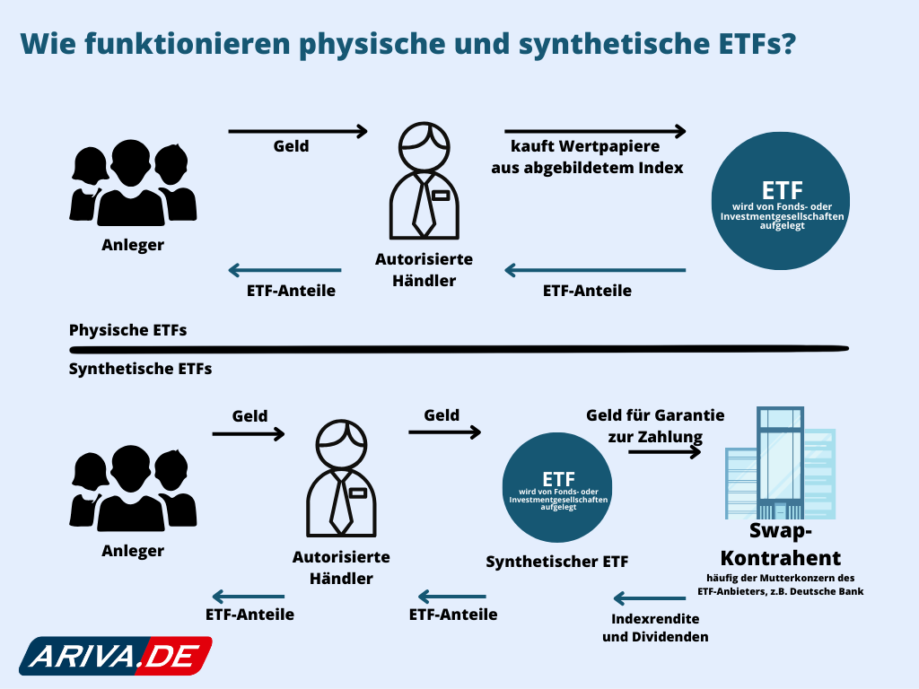 Synthetische Replikation: Hierbei verwendet der ETF Derivate, um die Performance des Index nachzubilden. Anstelle des direkten Kaufs der Indexbestandteile schließt der Fonds Swap-Geschäfte mit einer Gegenpartei, meist einer Bank, ab. Diese Methode kann eine genauere Nachbildung des Index ermöglichen, birgt aber zusätzliche Risiken, wie das Kontrahentenrisiko.