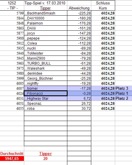 1.253.DAX Tipp-Spiel, Donnerstag, 18.03.10, 17.45 Uhr, DAX ....???