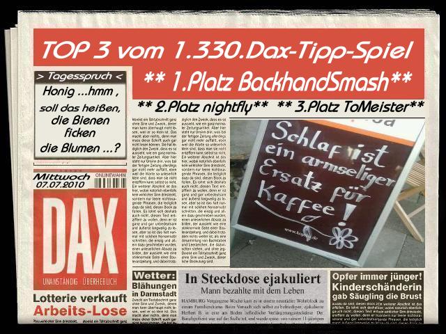 1.331.DAX Tipp-Spiel, Donnerstag, 08.07.10, 17.45 Uhr, DAX ....???