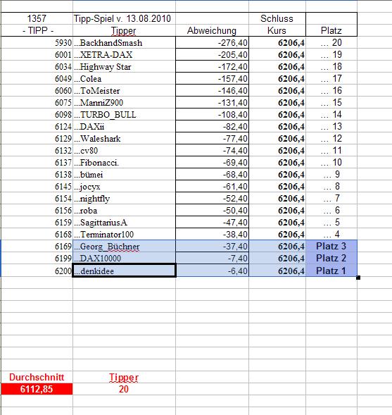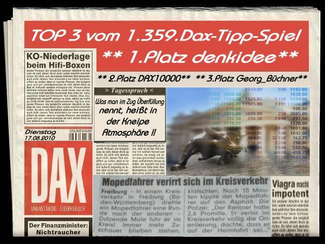 1.360.DAX Tipp-Spiel, Mittwoch, 18.08.10, 17.45 Uhr, DAX ....???