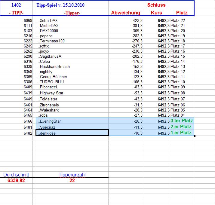 1.403.DAX Tipp-Spiel, Montag, 18.10.10, 17.45 Uhr, DAX ....???