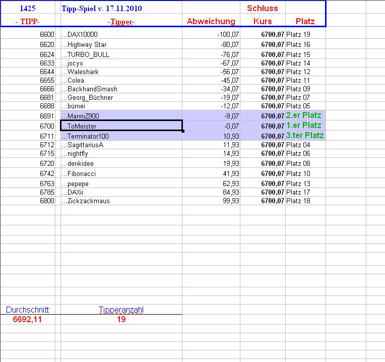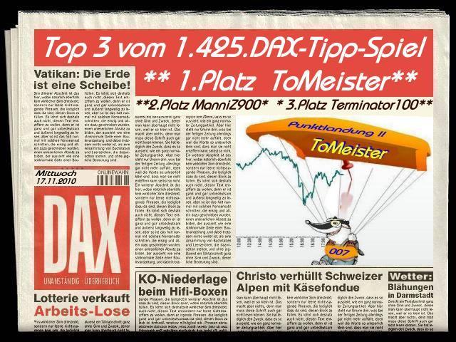 1.426.DAX Tipp-Spiel, Donnerstag, 18.11.10, 17.45 Uhr, DAX ....???