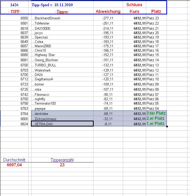 1.427.DAX Tipp-Spiel, Freitag, 19.11.10, 17.45 Uhr, DAX ....???