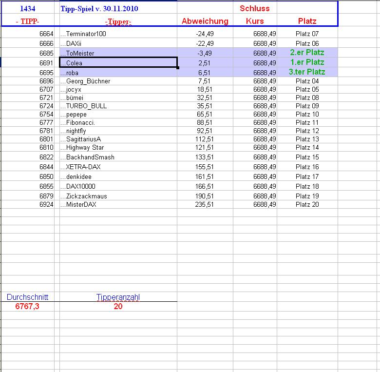 1.435.DAX Tipp-Spiel, Mittwoch, 01.12.10, 17.45 Uhr, DAX ....???