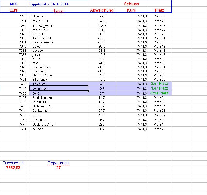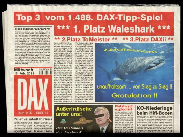 1.489.DAX Tipp-Spiel, Donnerstag, 17.02.11, 17.45 Uhr, DAX ....???