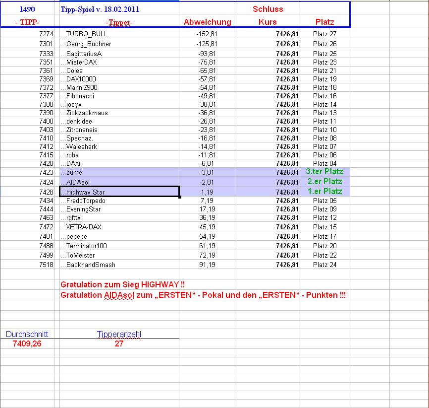 1.491.DAX Tipp-Spiel, Montag, 21.02.11, 17.45 Uhr, DAX ....???