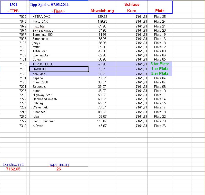 1.502.DAX Tipp-Spiel, Dienstag, 08.03.11 , 17.45 Uhr, DAX ....???