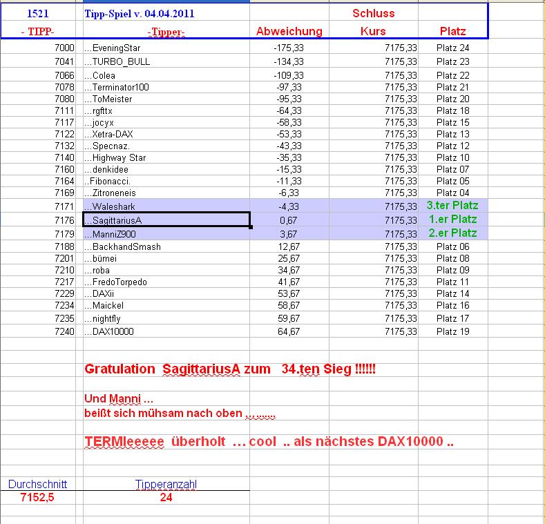 1.522.DAX Tipp-Spiel, Dienstag, 05.04.11, 17.45 Uhr, DAX ....???