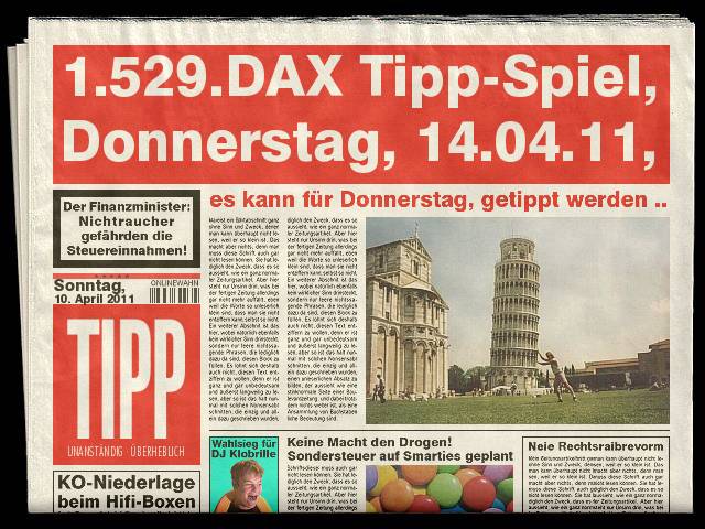 1.529.DAX Tipp-Spiel, Donnerstag, 14.04.11, 17.45 Uhr, DAX ....???
