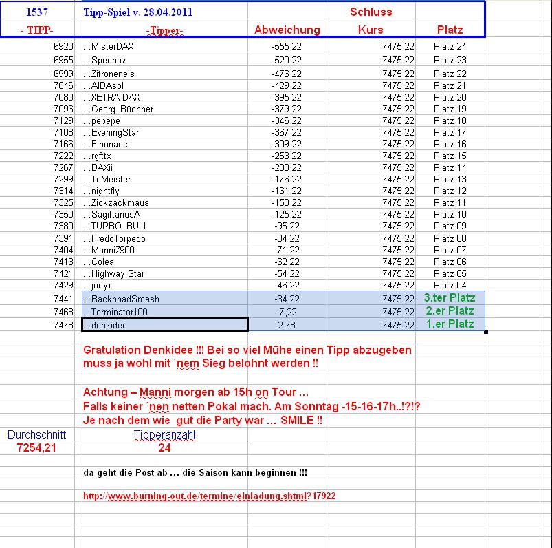 1.538.DAX Tipp-Spiel, Freitag, 29.04.11, 17.45 Uhr, DAX ....???