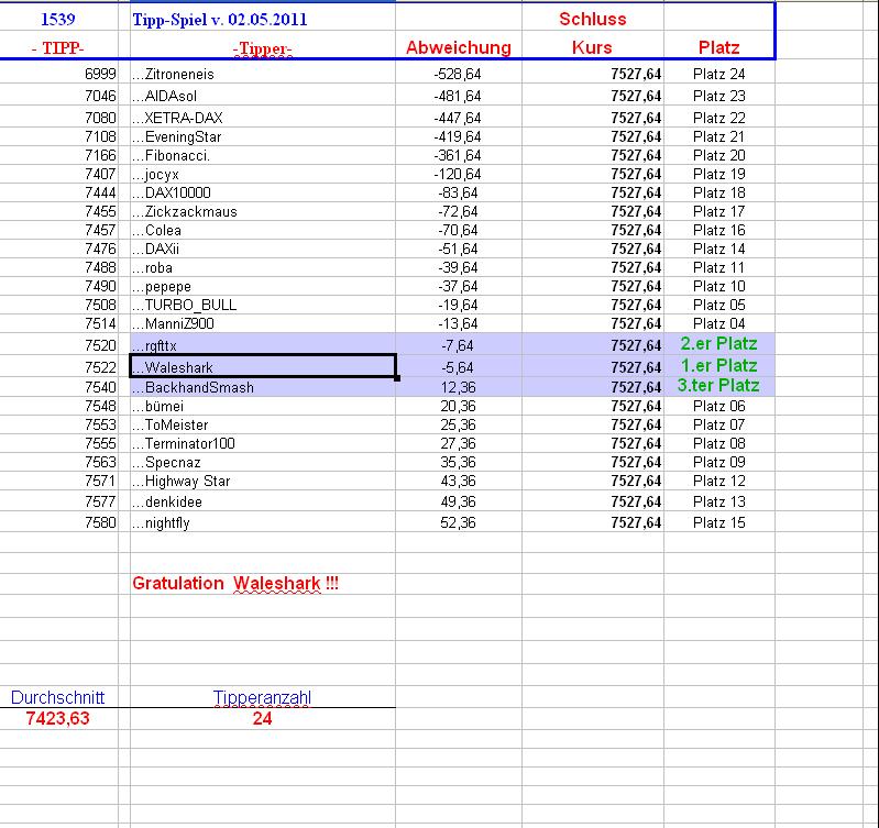 1.540.DAX Tipp-Spiel, Dienstag, 03.05.11 399517