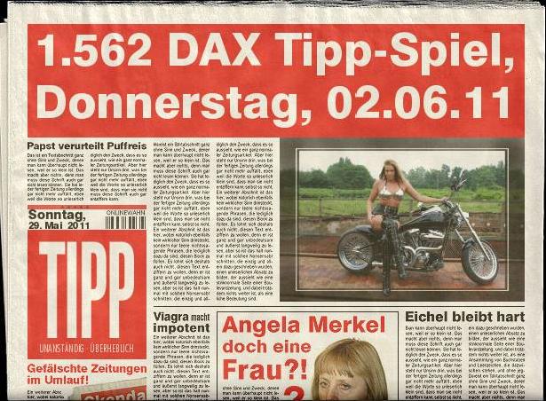 1.562 DAX Tipp-Spiel, Donnerstag, 02.06.11, 17.45 Uhr, DAX ....???