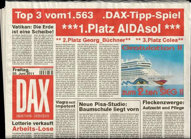 Gewinnerlinks 1.562. DAX Tipp-Spiel, Donnerstag 02.06.2011, 17.45 Uhr,  DAX 7.074,12