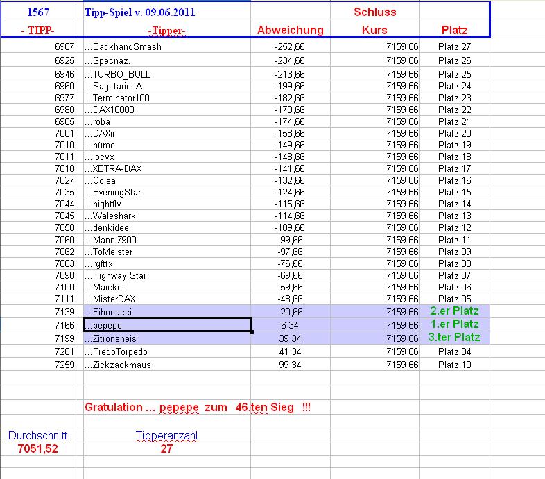 1.568.DAX Tipp-Spiel, Freitag, 10.06.2011 411040