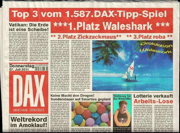 1.588.DAX Tipp-Spiel, Freitag, 08.07.2011,17.45 Uhr, DAX ???