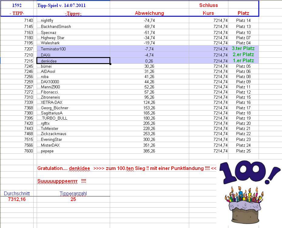 1.593.DAX Tipp-Spiel, Freitag, 15.07.2011,17.45 Uhr, DAX ....???