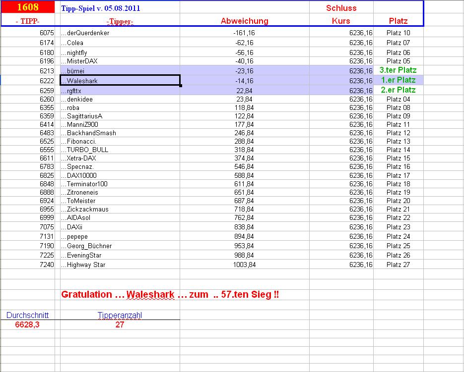 1.609.DAX Tipp-Spiel, Montag, 08.08.2011 428043