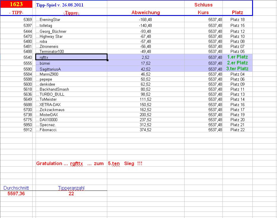 1.624.DAX Tipp-Spiel, Montag, 29.08.2011 434042