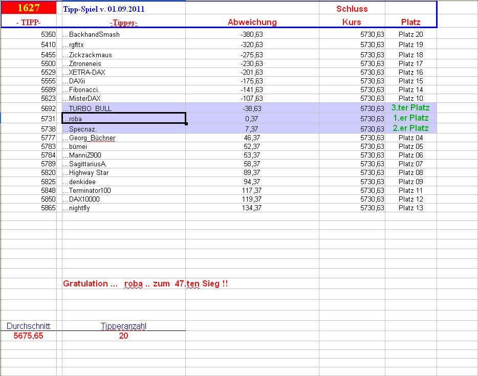 1.628.DAX Tipp-Spiel, Freitag, 02.09..2011 435402