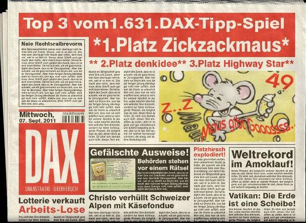 1.632.DAX Tipp-Spiel, Donnerstag, 08.09.2011,17.45 Uhr, DAX ....???
